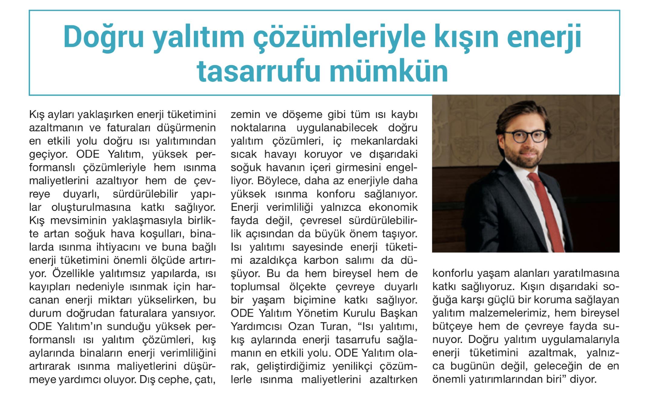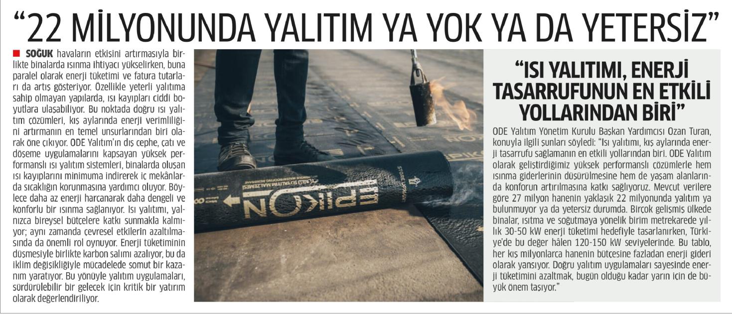 ODE Yalıtım hakkında sektörel ve genel basına yansımış haber küpürlerine bu bölümden ulaşabilirsiniz.