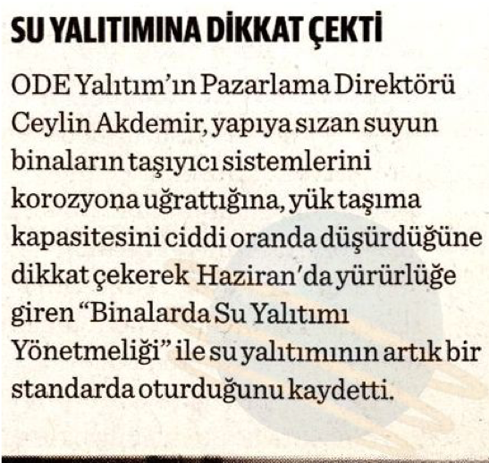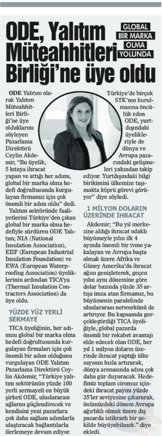 ODE Yalıtım hakkında sektörel ve genel basına yansımış haber küpürlerine bu bölümden ulaşabilirsiniz.