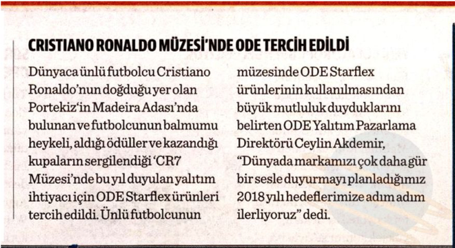 CRİSTİANO RONALDO MÜZESİ NDE ODE STARFLEX ÜRÜNLERİ TERCİH EDİLDİ