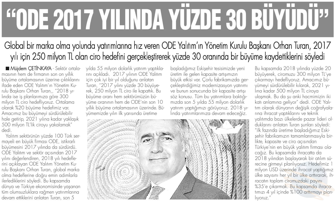 ODE 2017 Yılında Yüzde 30 Büyüdü