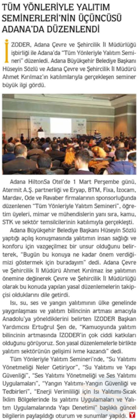 Tüm Yönleriyle Yalıtım Semineri’nin Üçüncüsü Adana’da Düzenlendi