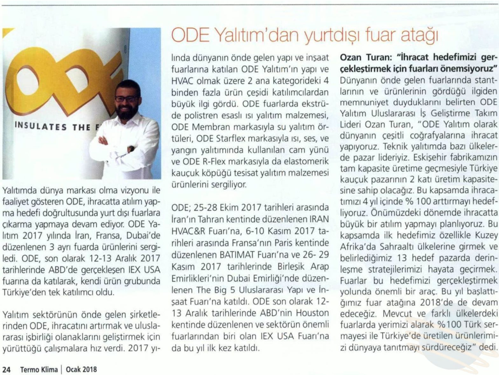 ODE Yalıtım Yönetim Kurulu Başkanı Orhan Turan- ’ODE 2017 Yılında Yüzde 30 Büyüdü’