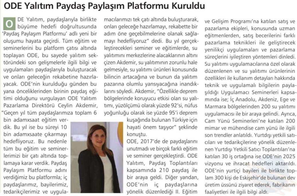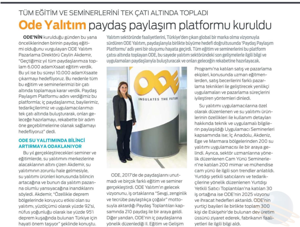 ODE Yalıtım hakkında sektörel ve genel basına yansımış haber küpürlerine bu bölümden ulaşabilirsiniz.