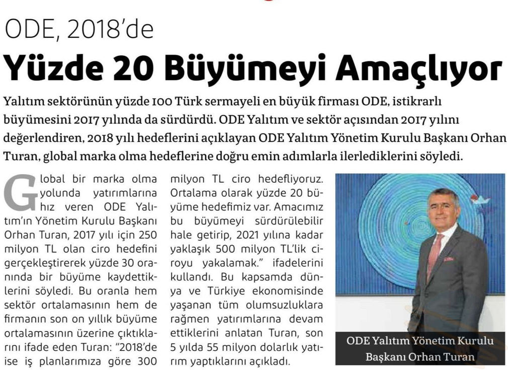ODE, 2018’de Yüzde 20 Büyümeyi Amaçlıyor