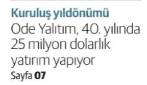 ODE YALITIM, 40. YILINDA 25 MİLYON DOLARLIK YATIRIM YAPIYOR