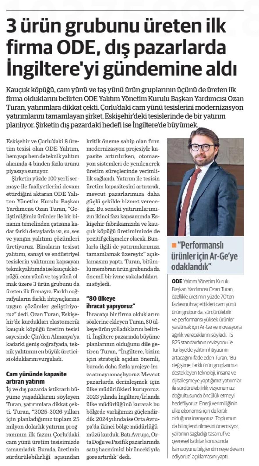 ODE Yalıtım hakkında sektörel ve genel basına yansımış haber küpürlerine bu bölümden ulaşabilirsiniz.