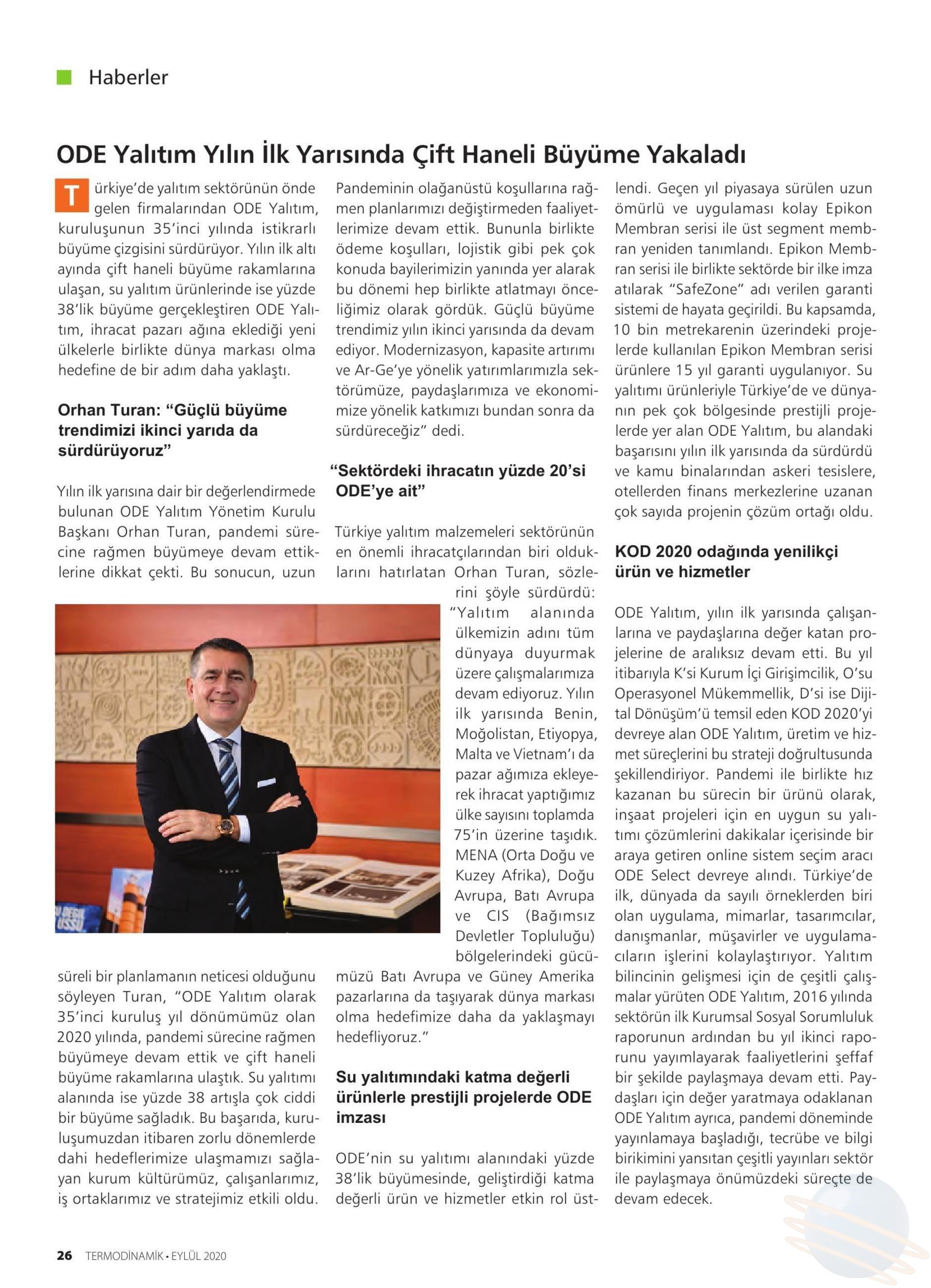 ODE Yalıtım Yılın İlk Yarısında Çift Haneli Büyüme Yakaladı