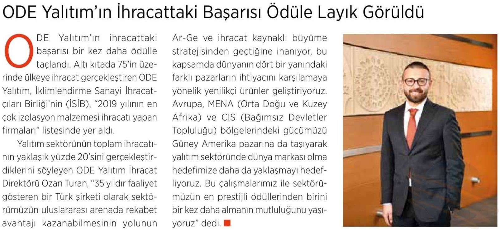 ODE Yalıtım'ın İhracattaki Başarısı Ödüle Layık Görüldü