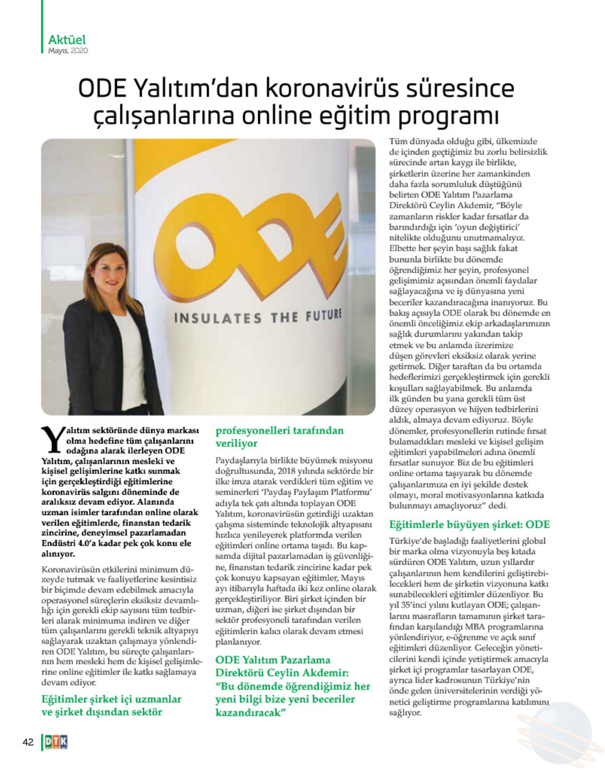 ODE Yalıtım'dan Koronavirüs Süresince Çalışanlarına Online Eğitim Programı