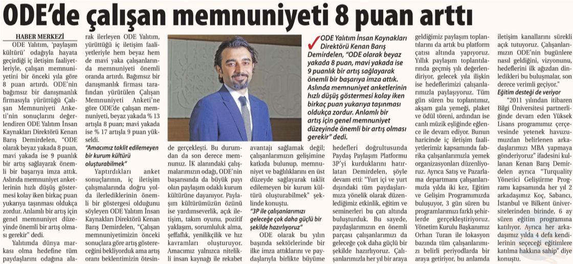 ODE DE ÇALIŞAN MEMNUNİYETİ 8 PUAN ARTTI