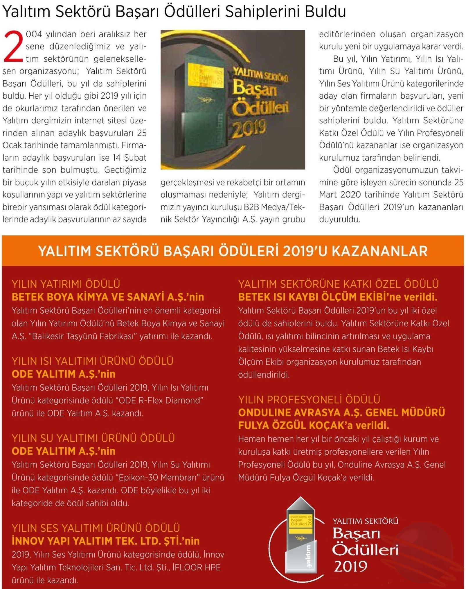 Yalıtım Sektörü Başarı Ödülleri Sahiplerini Buldu