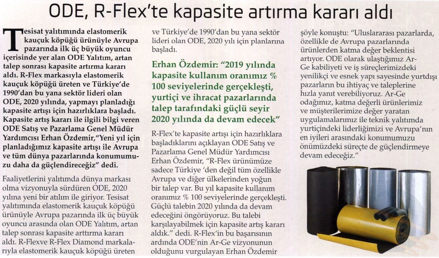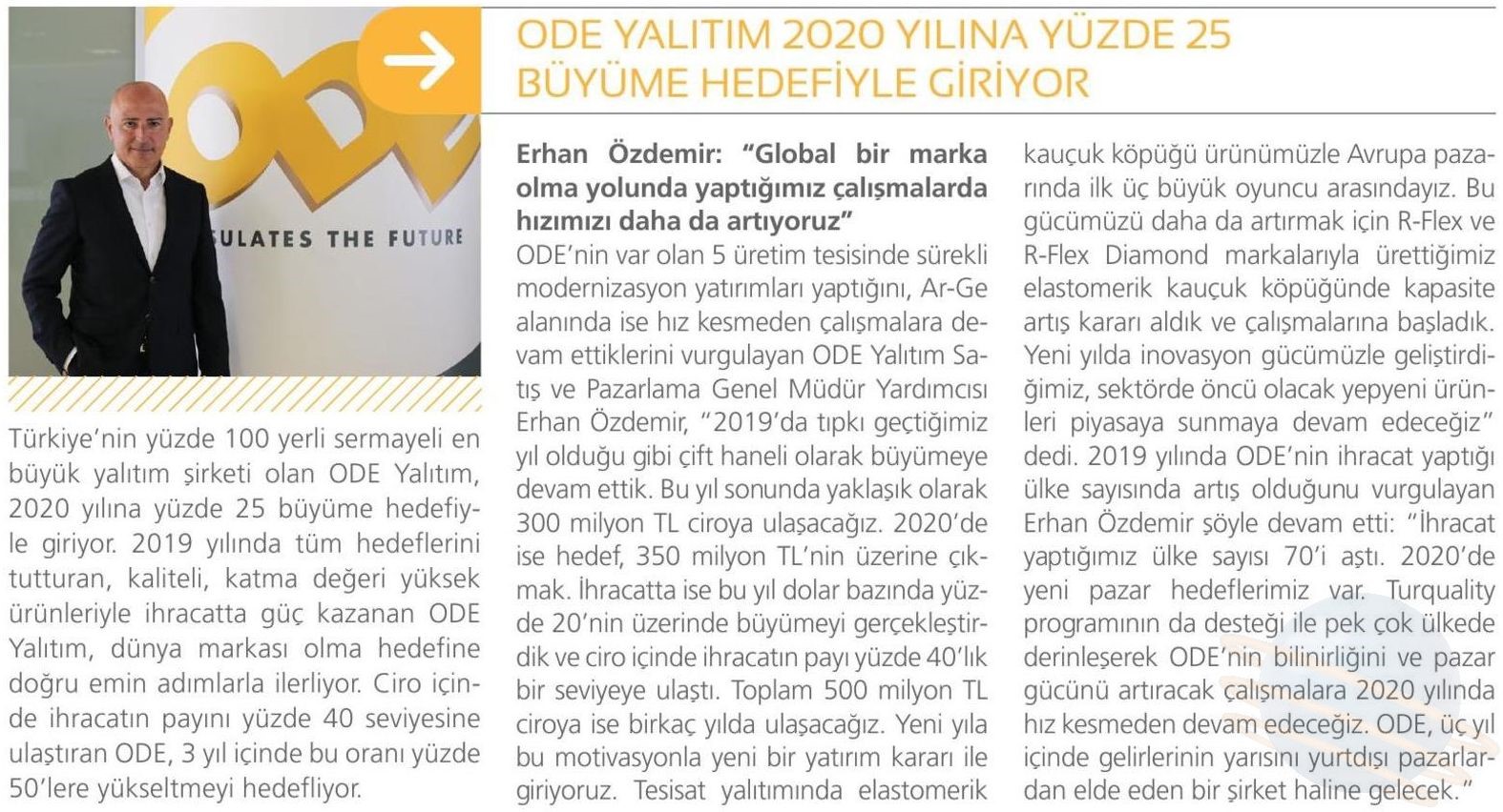 ODE Yalıtım 2020 Yılına Yüzde 25 Büyüme Hedefiyle Giriyor