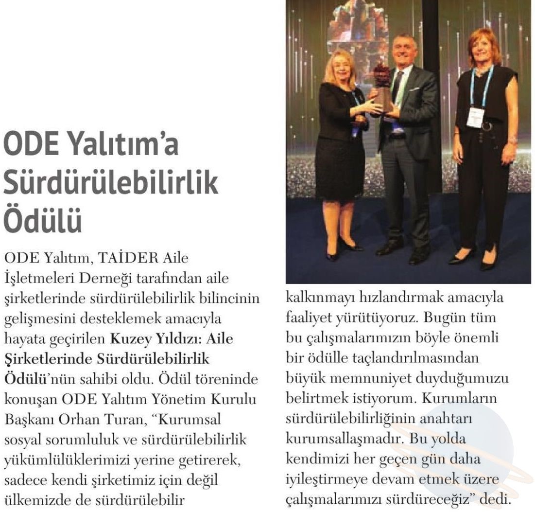 ODE Yalıtım'a Sürdürülebilirlik Ödülü
