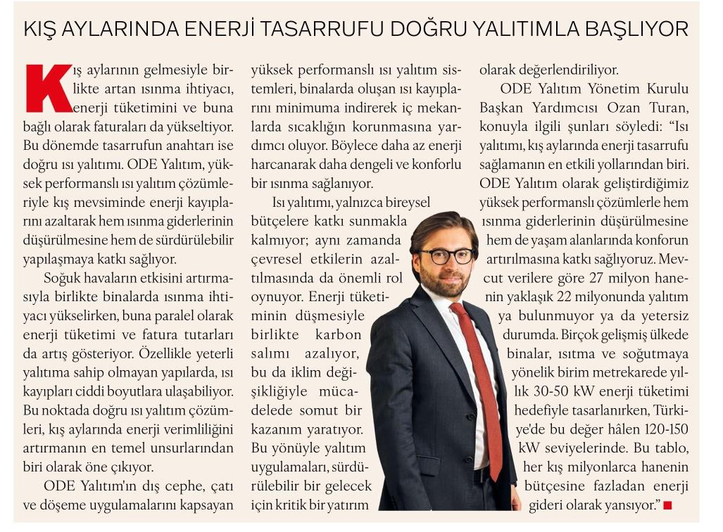 ODE Yalıtım hakkında sektörel ve genel basına yansımış haber küpürlerine bu bölümden ulaşabilirsiniz.